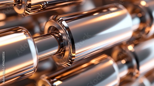© JP STUDIO LAB, Naklejka premium High-resolution close-up of a boiler tubes bundle, showcasing the seamless connections and robust materials used in refinery and petrochemical plants