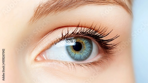 © PixelPlace, Obraz premium High-resolution close-up of a human eye, showcasing the intricate details of the iris, eyelashes, and skin texture.