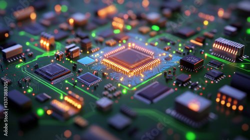 Obraz premium High-resolution close-up of a microchip with embedded IoT sensors,...
