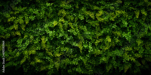 Obraz premium High resolution Close up of fresh nature spring bushes wall pattern. Green leaf plant, greenery grass texture background pattern for walllpaper, background Generative AI.