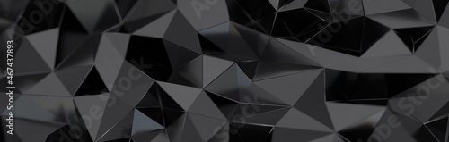 © vegefox.com, Obraz premium High resolution 3d abstract geometric black background, triangle seamless