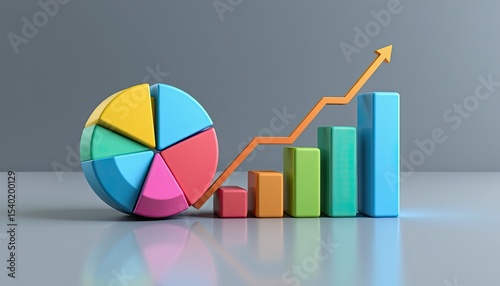 Fototapeta premium high resolution 3d pie chart and stacked bar graph representing revenue planning and financial success. 4k resolution.