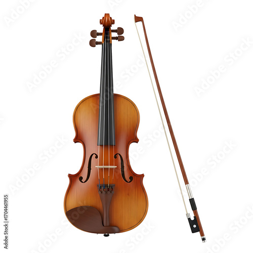 © Adi, Fototapeta premium High-Resolution 3D Render of a Classic Violin and Bow, Isolated on White Background