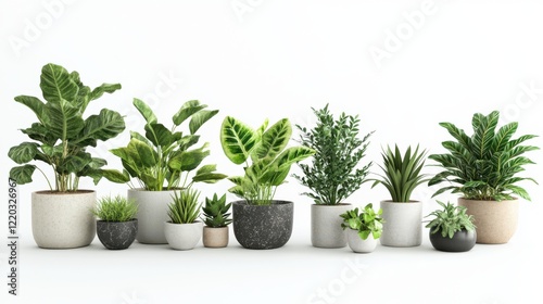 © sch.photosai, Obraz premium High-Resolution 3D Render of Popular Houseplants in Stylish Modern Pots