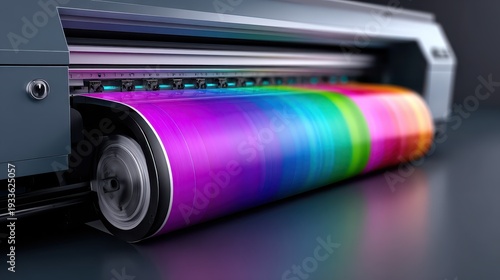 Obraz premium High-Resolution Digital Printing Machine with Vibrant Color Roll in Focus and Modern Industrial Design