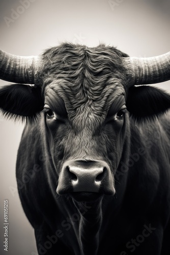 Naklejka premium High resolution HD photo portrait of a auroch, black background, detailed, generative AI