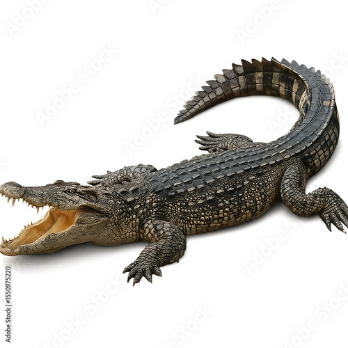 © RahmanGraphic, Obraz premium High-Resolution Image of a Crocodile with Open Mouth and Curved Tail on Transparent Background