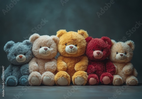 © KADER, Obraz premium High-Resolution Image of a Group of Teddy Bears Sitting Together with Soft Lighting