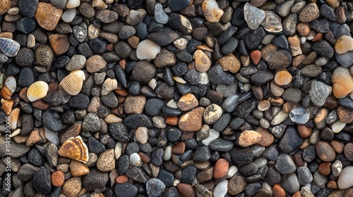 Naklejka premium High-Resolution Image of Smooth Sea Stones and Shells Beach Pebble Texture Background