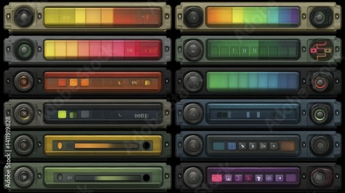 Obraz premium High-resolution image of various rectangular buttons for digital interface...