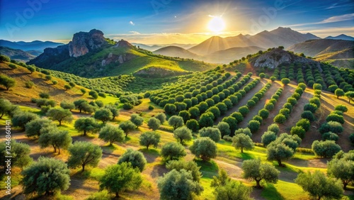 Fototapeta premium High-resolution image: rolling Cadiz hillsides, ancient olive groves basking...
