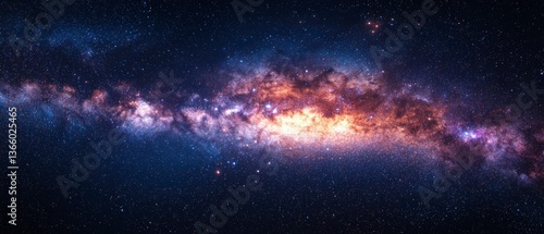 © Khatthaphone, Fototapeta premium High-resolution Long Exposure Panorama of the Milky Way Galaxy with Stars and Space Dust - Ultra Wide Screen Wallpaper