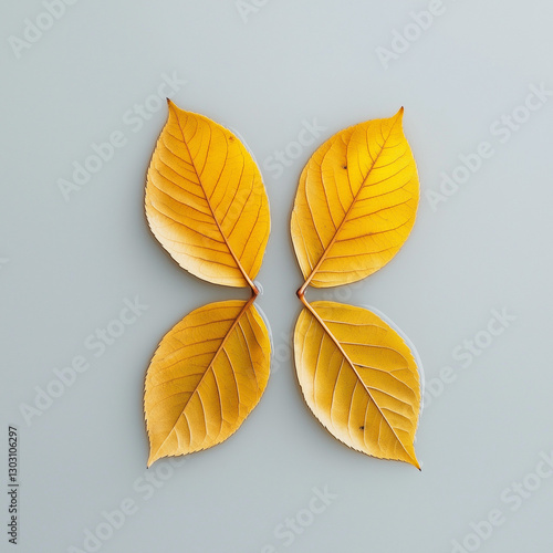 © Ramsha, Obraz premium High-resolution macro photography showcasing vibrant yellow leaves with intricate textures against a light gray background. Perfect for nature-inspired designs and seasonal themes.