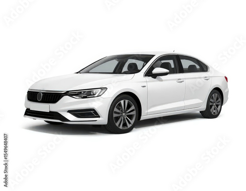 Fototapeta premium High-resolution mockup of a modern sedan on a plain white studio backdrop. Ideal for commercial branding, product visualization, and corporate fleet marketing.