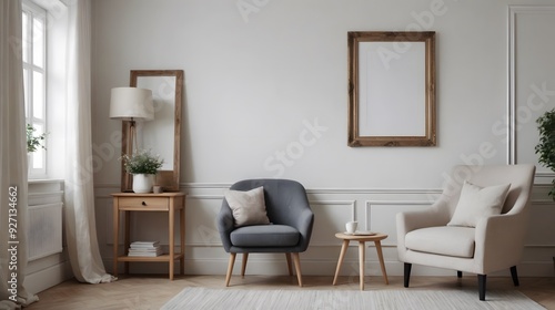 © TRP, Fototapeta premium High resolution photo frame on the wall interior image template, empty art frame interior design ai generated designer pictures.