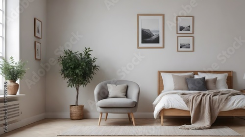 © TRP, Fototapeta premium High resolution photo frame on the wall interior image template, empty art frame interior design ai generated designer pictures.