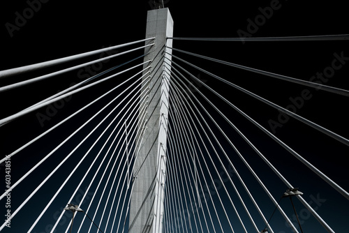 Obraz premium High-resolution photograph of a suspension bridge, emphasizing the structural...