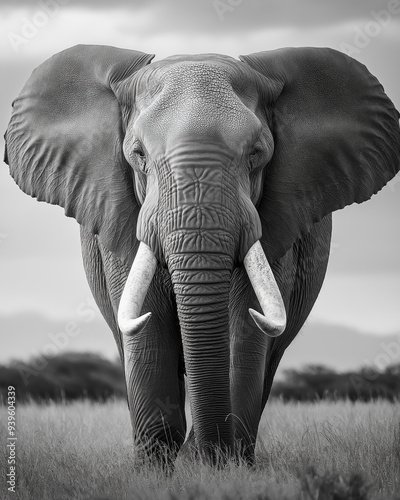 Naklejka premium 15. High-resolution portrait of a regal African elephant in the savannah