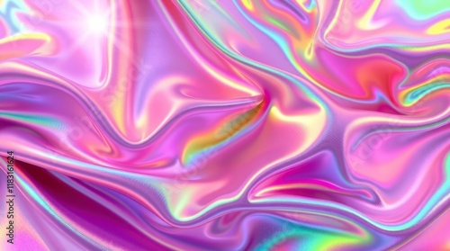 © ARIF, Fototapeta premium High-resolution stock photo of a processed collage of iridescent fabric with holographic texture, featuring a soft cinematic haze and soft focus. The hazy background enhances its commercial and profes