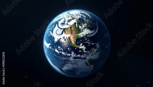 © Lexi, Obraz premium High-resolution view of Earth from space showing vibrant oceans and cloud patterns with starry background