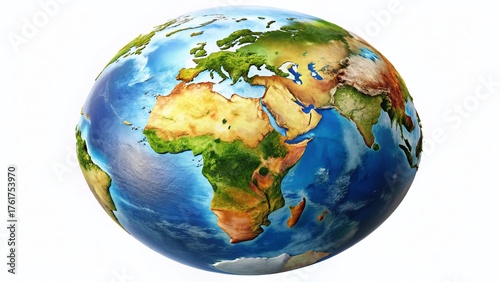 © Adisorn, Naklejka premium High-Resolution World Globe Map Isolated on White Background, Detailed Planet Earth