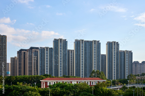 © Dong, Fototapeta premium High-Rise Apartments with Blue Sky Background