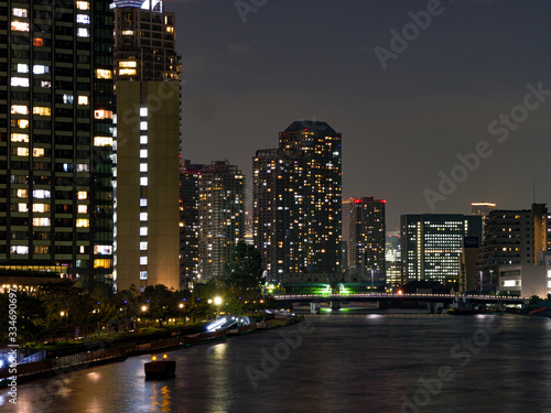 Obraz premium High rise buildings in Tokyo reflected in a river