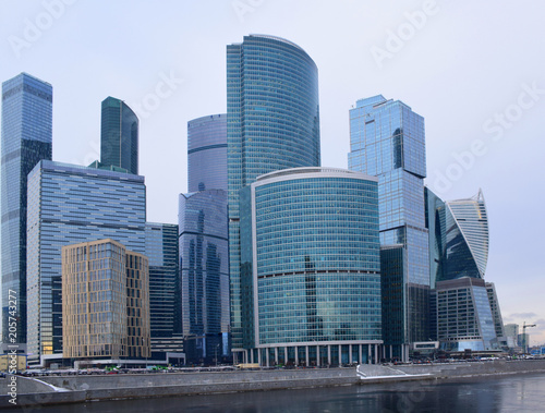 Obraz premium High-rise buildings of the Moscow international business center Moscow City on the bank of the Moskva River. The beginning of construction 1998. Russia, Moscow, December 2017.