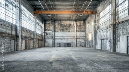 Obraz premium High-rise industrial building with exposed concrete walls and geometric...