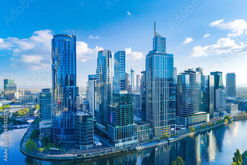 © song, Fototapeta premium High-Rise Office Buildings in the Financial District with Blue Sky