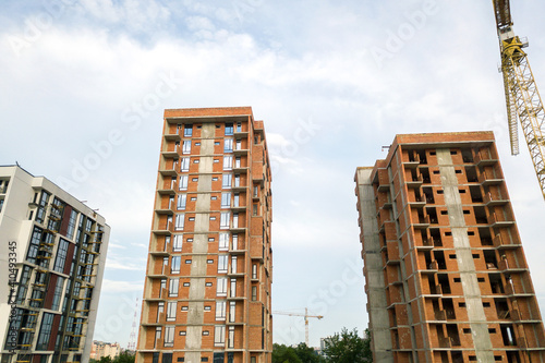 Fototapeta premium High-rise residential apartment buildings and tower crane under development...