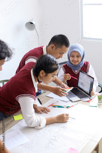 © Gatot, Fototapeta premium High School Students Doing School Work Together at The Study Room