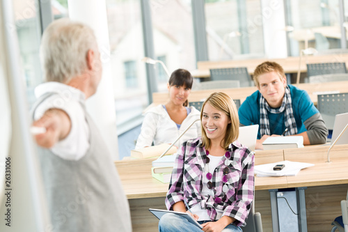 Fototapeta premium High school - three students with mature professor