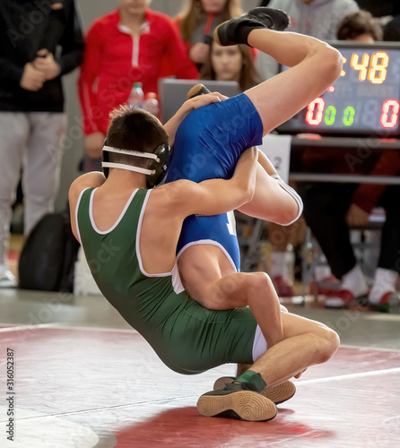 Naklejka premium High School wrestlers competing at a wrestling meet