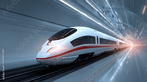 Fototapeta premium High-speed bullet train moving through modern tunnel with light effect