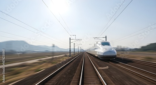 Fototapeta premium High-speed bullet train passing through landscape