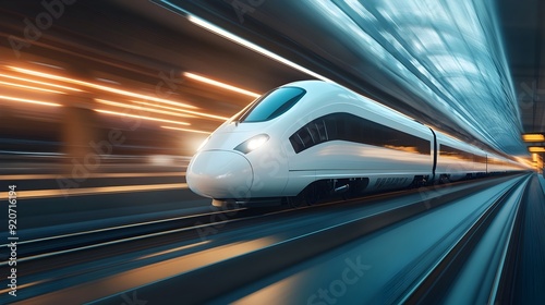 Fototapeta premium High-Speed Bullet Train Speeding Through Modern Railway Tracks