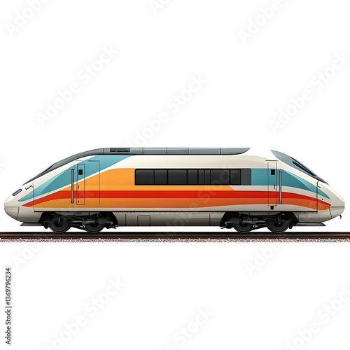 © RAKSIWAH, Naklejka premium High-Speed Bullet Train Viewed From Side in Simple Clipart Style with Vibrant Color Design