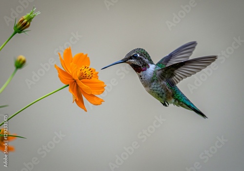© Kenny, Fototapeta premium High-speed capture of a hummingbird hovering near a vibrant flower