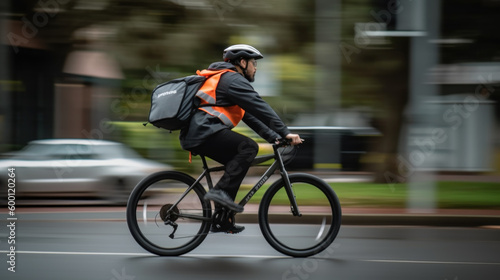 Fototapeta premium High-speed cyclist riding in town, motion blur created with generative AI...