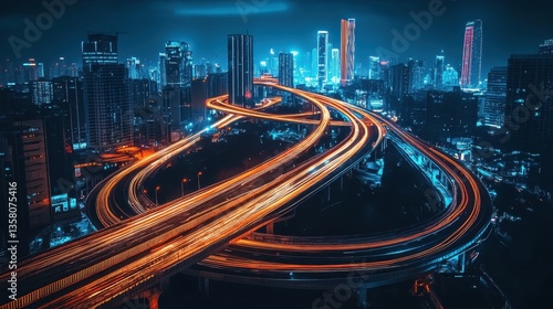 Fototapeta premium High-speed digital data flow depicting vibrant particles in motion during nighttime
