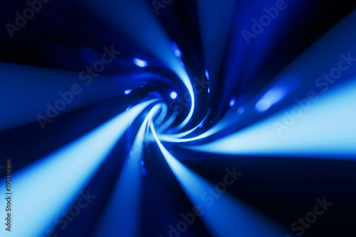 © alones, Fototapeta premium High-speed digital data transmission concept. Blue glowing fiber optic lines swirling in a dark space. Futuristic background for network connectivity, cyber security, and quantum computing