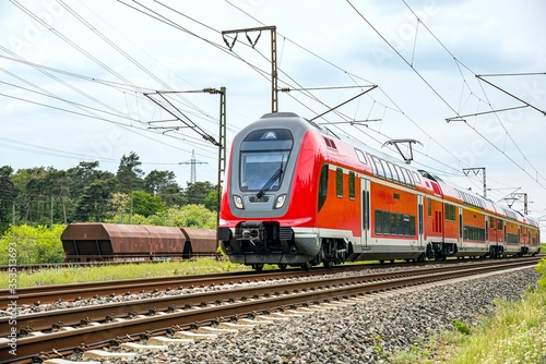 © yaalan, Fototapeta premium High-speed electric railway train . Modern high speed train