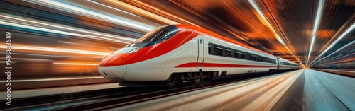 Fototapeta premium High-speed electric train moving through urban landscape