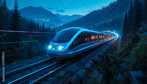 © Jacks Studio, Obraz premium High-speed futuristic train traveling at night