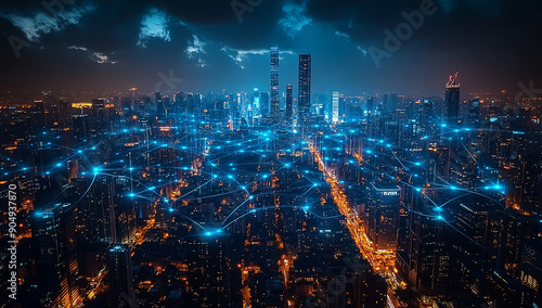 © Md Shawan, Fototapeta premium high speed internet, connect diagram technology,smart city