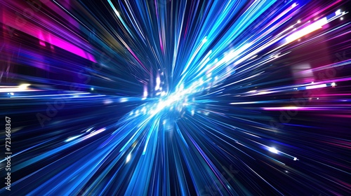 Obraz premium High-speed motion capture of vibrant blue and pink light streaks, creating a...