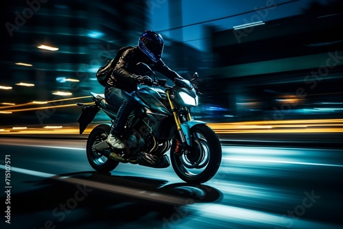 © Kalana, Fototapeta premium high speed motorcycle on the road at night