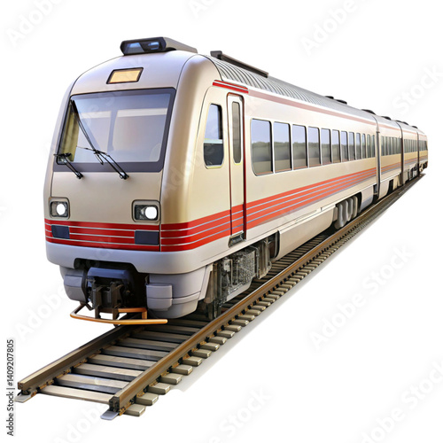 © Mostafizur, Fototapeta premium High speed red and white train on isolated background, showcasing advanced technology in public rail transportation