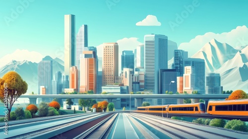 Obraz premium High-speed technology infrastructure flat design front view urban theme 3D...